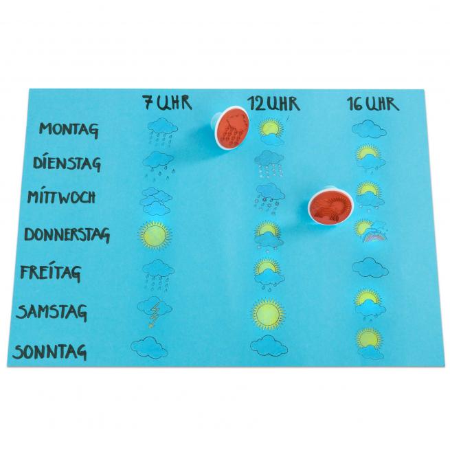 Wird es heute regnen, stürmen oder schneien? Mit den 10 großen Wetterstempeln lassen Ihre Schüler auch die Sonne scheinen oder gestalten ganze Wetterlagen und eigene Bildgeschichten.