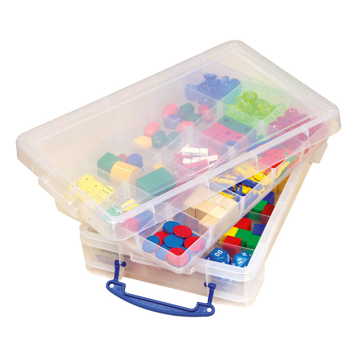 1 Box mit 30 Fächern – 2 Einlagen machen es möglich. Somit eignet sich diese transparente Box aus robustem Kunststoff bestens für Bastelzubehör, Büroutensilien oder generell Kleinteile. Die Einlagen können Sie auch herausnehmen und ohne die Box transportieren. Die blauen Bügelverschlüsse sind sicher an der Box befestigt und lassen sich kinderleicht bedienen. So schützt der Deckel den Inhalt bestens und alles bleibt, wo es hingehört.