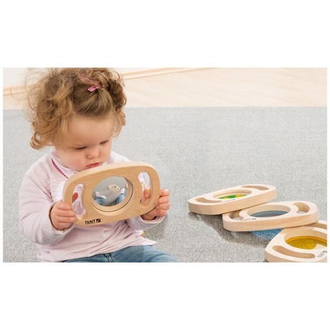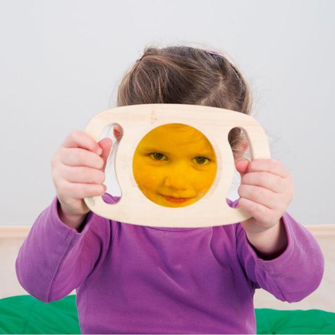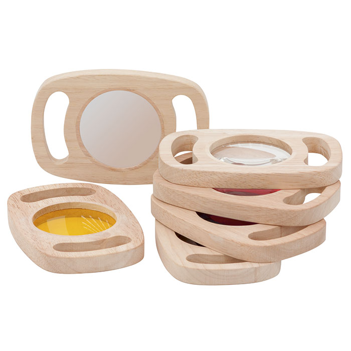 Mit den 6 verschiedenen Rahmen machen Ihre Kinder interessante Entdeckungen rund um Licht, Lichtbrechung und Farbfilter. Die kleinen Forscher halten die Spiegel und Linsen an den breiten Griffen bestens mit beiden Händen.