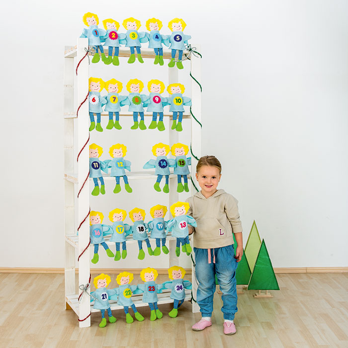 Himmlische Idee. Machen Sie aus diesen 24 Engeln im Handumdrehen einen außergewöhnlichen Adventskalender. Schreiben Sie mit Textilmalern oder kleben Sie Adventskalenderzahlen auf die Engel.