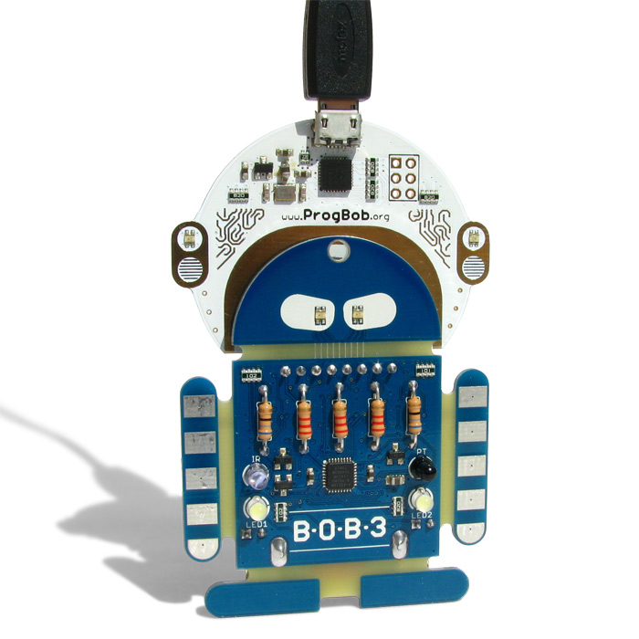 BOB3 ist ausgestattet mit Touchsensoren, LEDs, IR-Sensoren zur Distanzmessung sowie einem Temperatursensor, um Umweltbedingungen wahrzunehmen. Der Roboter kann, je nach programmierten Befehlen, seine Augen in allen Farben blinken lassen und Berührungen am Arm erkennen.