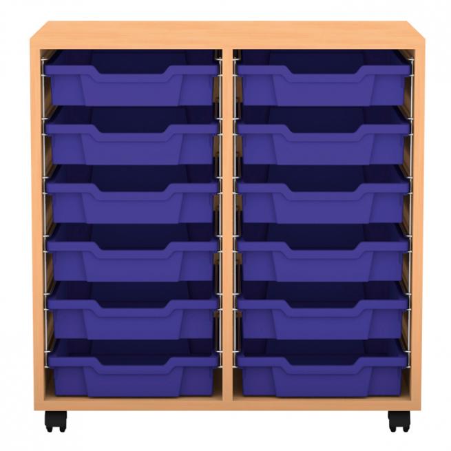 Regal mit 12 flachen Boxen