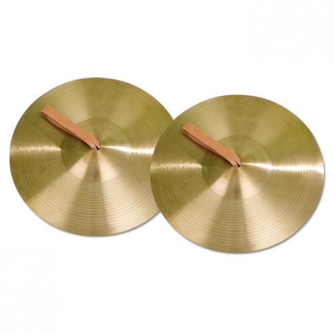 Die Cymbel-Paare sind jeweils mit Lederschlaufen versehen. Sie werden entweder paarweise gegeneinander geschlagen oder auf Stativen gespielt.