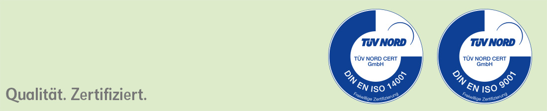 Wir haben unsere gesamten Arbeitsabläufe und Dienstleistungen begutachten lassen. Unser Einsatz für hochwertige, nachhaltige Produkte in Verbindung mit bestem Service ist nun offiziell beurkundet. So gewährleisten wir Ihre Qualitätsansprüche und unsere eigenen.
