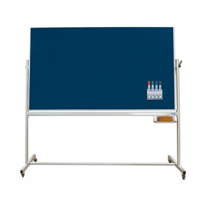 Die mobile Drehtafel assistiert bei Ihren Präsentationen überall in Ihrer Schule. Die Tafelfläche aus grün emailliertem Stahl und Alu RC-Profil ist beidseitig beschreibbar. Mit nur einem Handgriff drehen Sie die Tafel und fixieren sie mit dem handlichen Drehgriff in jedem gewünschten Winkel. Das solide Stahlgestell sorgt für sicheren Stand.
