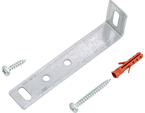 | BACKWINKEL empfiehlt: Schränke mit nach vorne offen stehenden Türen sind kippgefährdet. Davon betroffen sind besonders breite Schränke mit geringer Tiefe, da die Türen hier einen langen Hebel darstellen. | Sicherungs-Set zur Wandmontage ![]() | Sicherungs-Set zur Fußbodenmontage Nicht geeignet bei Fußbodenheizung ![]() |