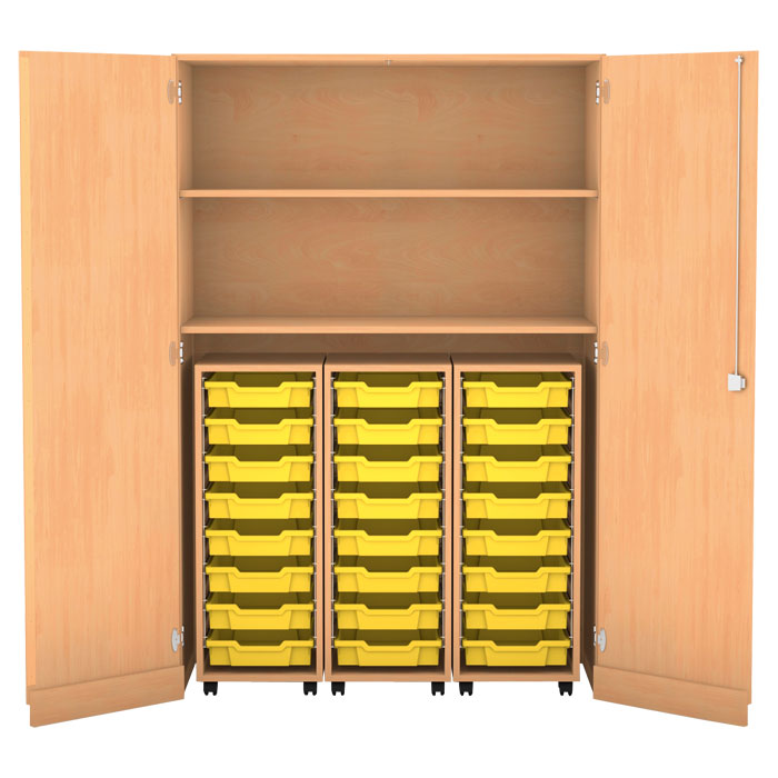 Die Garagenschränke bieten viel Stauraum und sind zudem noch extrem flexibel im Einsatz. Die einzelnen Container sind dank der Rollen überall dort einsatzbereit, wo Sie sie benötigen. Am Ende der Stunde verstauen Sie die Container wieder im Schrank. So ist alles ordentlich aufbewahrt und geschützt vor unbefugtem Zugriff.