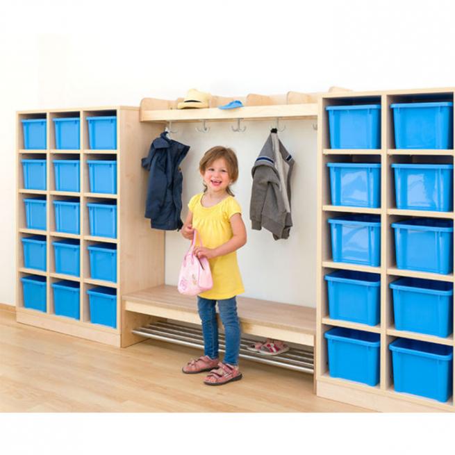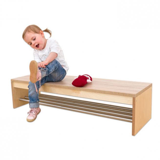 Bänke sind praktische Helfer in jedem Garderobenbereich. Ihre Gäste legen Taschen ab oder warten im Sitzen, die Kinder ziehen sich bequem ihre Schuhe an. Damit Sie die passende Bankgröße für Ihre Kleinen finden, erhalten Sie die Garderobenbänke CHIPPO in verschiedenen Höhen und Längen. Im Fußraum bieten breite Schuhgitter genügend Platz für die Kinderschuhe. Die frischen Farben der Sitzflächen beleben das Ambiente. Die Garderobenbänke lassen sich optimal mit anderen Möbeln aus dem CHIPPO-Sortiment kombinieren.