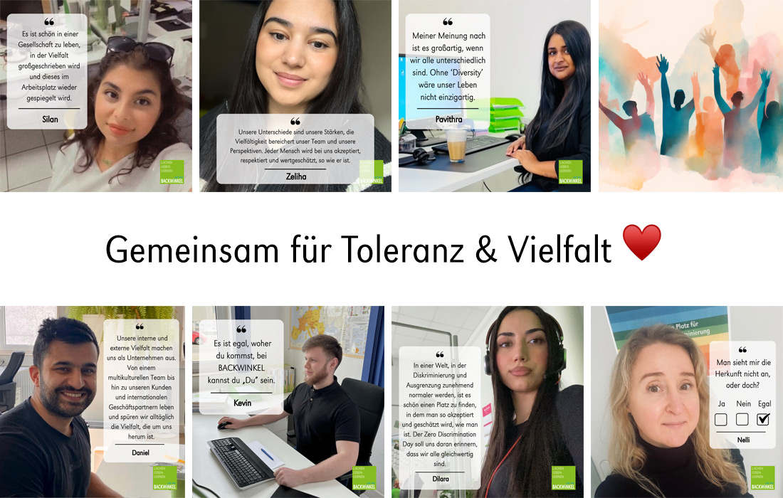Bei BACKWINKEL ist kein Platz für Rassismus und Diskriminierung. Wir lachen, leben, lernen Vielfalt täglich, indem wir einander wertschätzen! Eitel Sonnenschein ist bei uns auch nicht immer, doch wir handeln nach unseren Werten Respekt & Teamwork, denn beide bringen uns nachhaltig weiter.