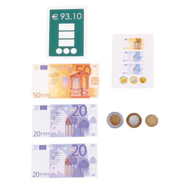 Wie setzt sich der Geldbetrag auf der Auftragskarte zusammen? Blanko-Felder auf der Karte symbolisieren die Anzahl der benötigten Scheine und Münzen. Aber welchen Wert haben sie? Um das herauszufinden, nehmen Ihre Schüler das Rechengeld zur Hand und ordnen die gesuchten Beträge an.