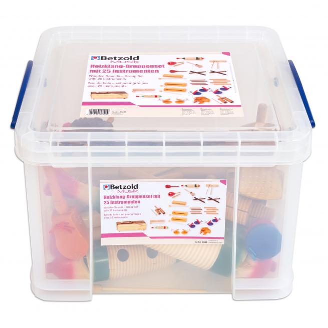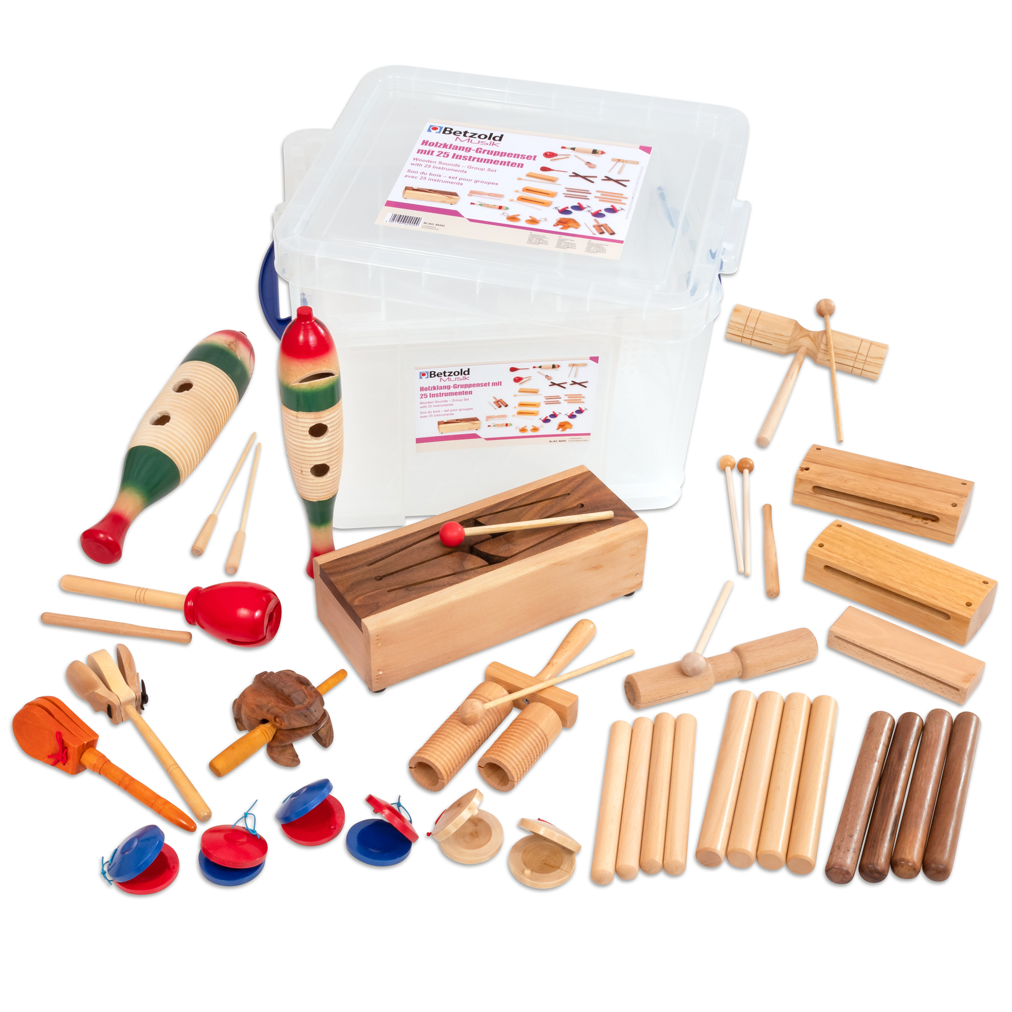 Ihre Schüler erleben Klanginstrumente aus Holz in ihrer faszinierenden Vielfalt. In der praktischen Transportbox steht Ihnen mit 25 Instrumenten ein kompletter Holzklang-Gruppensatz zur Verfügung. Die Bandbreite der verschiedenen Holzklänge reicht von der sonoren Rhythmik-Trommel bis zum harten Sound der Claves. Mit dem Holzklang-Gruppenset sind Sie für Ihren Unterricht immer bestens ausgestattet. Optimal geeignet auch für Vertretungsstunden.