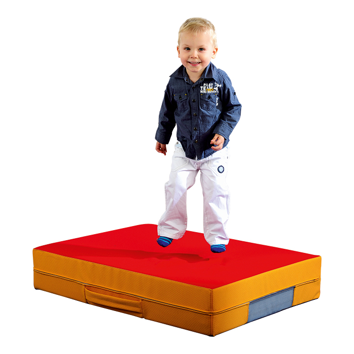 Wie ein kleines Trampolin funktioniert dieses Kissen. Der Federkern gibt den Kleinen immer wieder neuen Schwung. Natürlich kann man sich auf dem Hüpfkissen auch ausruhen. Die Unterseite ist rutschsicher beschichtet (Turnmattenstoff). Der Bezug ist 40° waschbar.