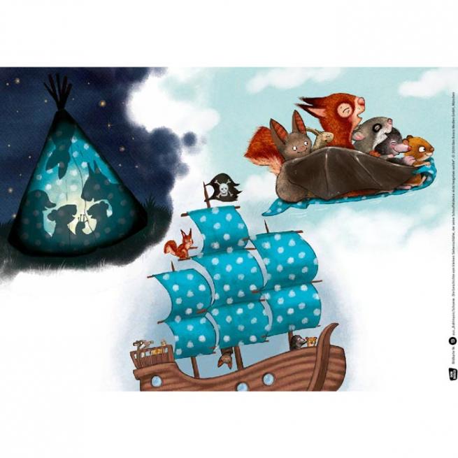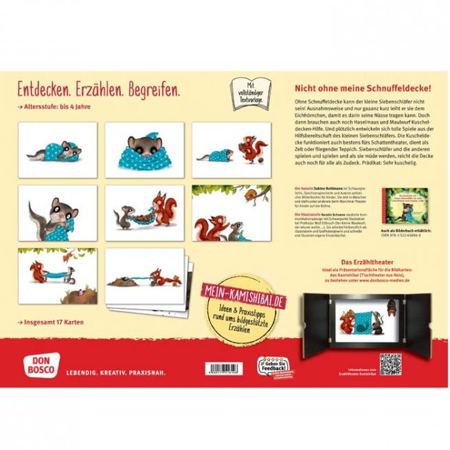 Seine Schnuffeldecke ist für den kleinen Siebenschläfer sein Ein und Alles. Darin macht er es sich gemütlich und fühlt sich geborgen. Am liebsten will er sie nie mehr hergeben. Als jedoch sein Freund Eichhörnchen Hilfe beim Transport seines Nussvorrats braucht, greift Siebenschläfer ihm doch unter die Arme und setzt seine geliebte Decke ein. Wobei die Freunde Fledermaus, Maulwurf und Maus Hilfe brauchen, welchen Spaß sie gemeinsam haben und ob schlussendlich alle unter einer Decke stecken, erfahren die Kinder im Erzähltheater Kamishibai.