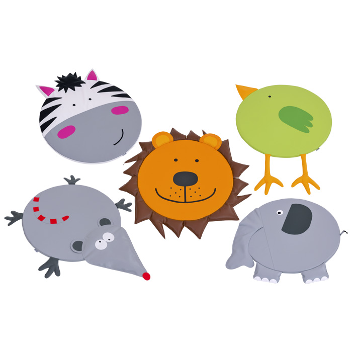 Auf diesen drolligen Bodenmatten trainieren kleine Krabbler die wichtigen Überkreuzbewegungen. Natürlich sitzen oder liegen die Kleinen auch gern auf den weichen Matten. Dank Beschichtung auf der Unterseite bleibt die Matte auch beim Toben an ihrem Platz. Der Kunstlederbezug ist mit einem feuchten Tuch leicht zu reinigen.