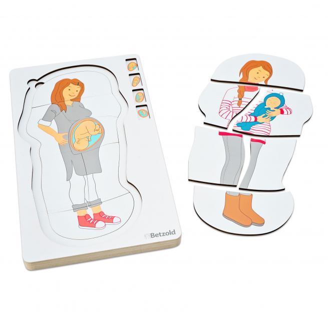 Vom Embryo zum Säugling: Das Puzzle führt über 4 Lagen anschaulich durch die verschiedenen Phasen der Kindesentwicklung im Mutterleib und liefert altersgerechte Gesprächsanlässe rund ums Thema Schwangerschaft. Die 27 liebevoll gestalteten Puzzleteile aus Holz können im Holzrahmen in 4 Schichten übereinander gepuzzelt werden. Oder Sie puzzeln sie nebeneinander auf dem Tisch, um die Entwicklungsschritte noch besser vergleichen zu können.