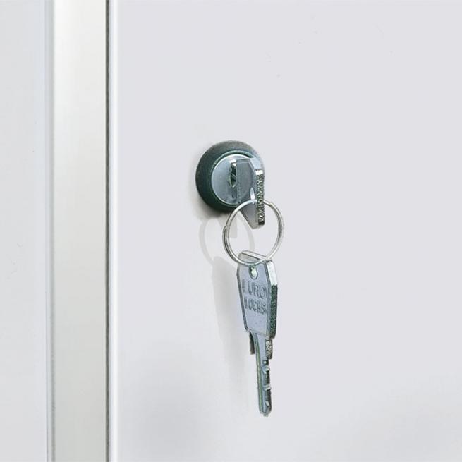 | Diebstahl-Schutz in 4 Schloss-Varianten: 1) Standard 2) Sicherheits-Drehriegel mit Vorhangschloss 3) Elektronisches Pin-Code-Schloss 4) Mechanisches Zahlenschloss • für feste Nutzer • für wechselnde Nutzer Service-Schlüssel für das elektronische Pin-Code-Schloss Service-Schlüssel für das mechanische Zahlenschloss |