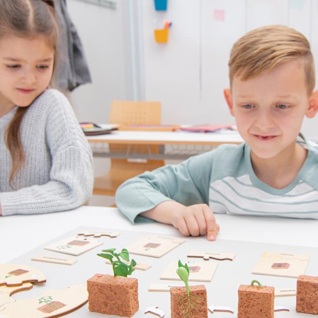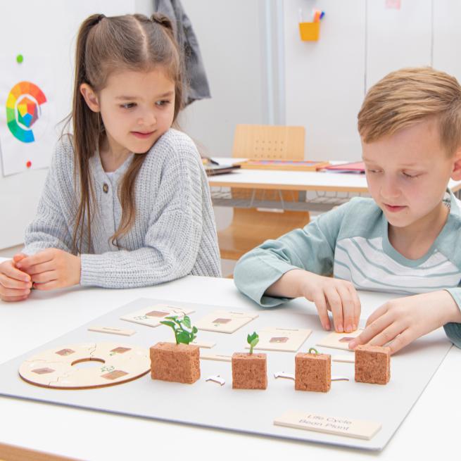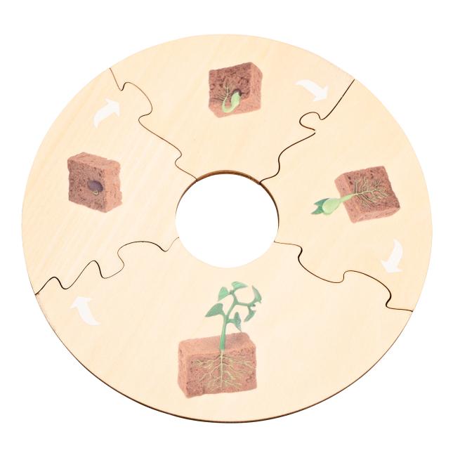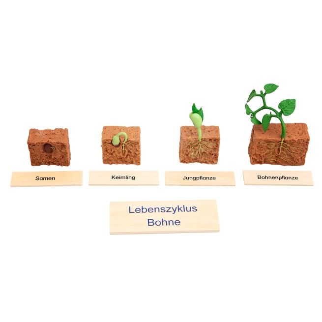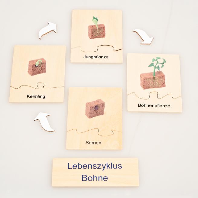Wie aus einem Samen eine Bohnenpflanze entsteht, entdecken Sie mit Ihren Kindern anschaulich mithilfe des mehrteiligen Lebenszyklus-Lernspiels. Die 4 enthaltenen Modelle sind gut greifbar und hygienisch abwaschbar. So erforschen die Kinder die Stadien Samen, Keimling, Jungpflanze und schließlich die entwickelte Bohnenpflanze haptisch. Dazu sind zwei Puzzle aus Holz enthalten. Die unterschiedlichen Entwicklungsstadien prägen sich durch das Zusammensetzen besonders gut ein. Wenn die Puzzleteile zusammenpassen, ist dies gleichzeitig eine gute Selbstkontrolle für die Kinder.