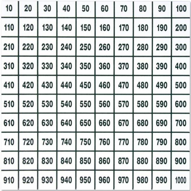 mit 100er-Feld mit den Zahlen von 10 – 1000