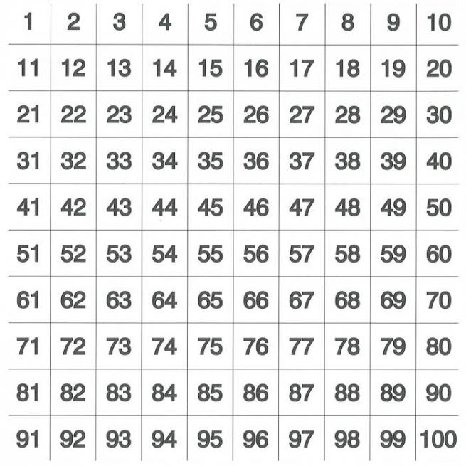 mit 100er-Feld mit den Zahlen von 1 – 100