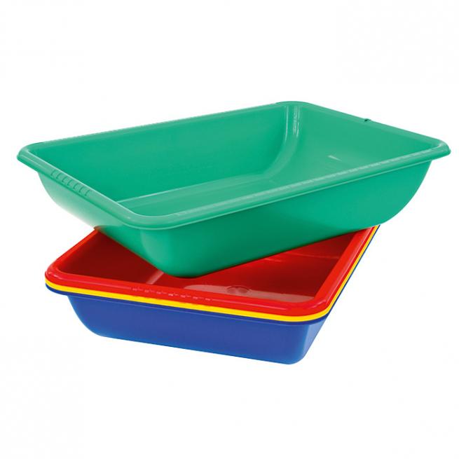 Bei vielen Experimenten mit Wasser sind große Wannen unentbehrliche Helfer. Mit diesen äußerst stabilen Kunststoff-Wannen arbeiten leicht mehrere Kinder gleichzeitig. Ideal für Forscher-Projekte und Spiele, draußen und drinnen.