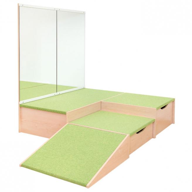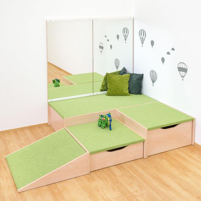 -materialien, mit denen Ihre Kinder am liebsten auf den Podesten spielen. In den beiden Wandspiegeln aus Sicherheitsglas beobachten die Kinder ihr Spiel und sind fasziniert vom eigenen Spiegelbild.