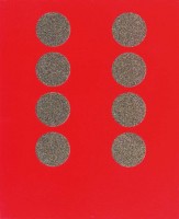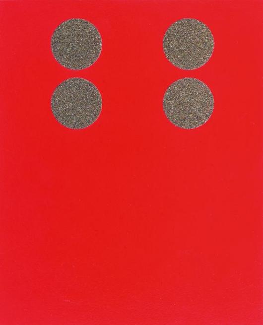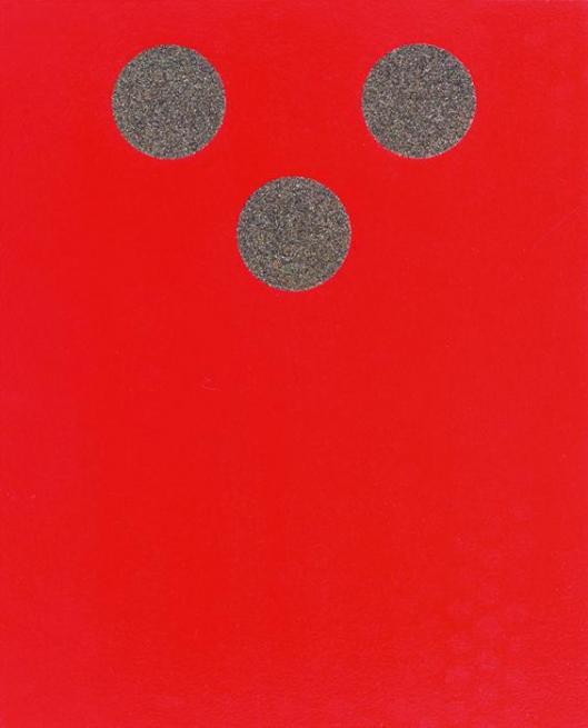 Mengen ertasten und begreifen. Auf den rot lackierten Holzplatten ist die jeweilige Menge mit großen Punkten aus Sandpapier dargestellt.