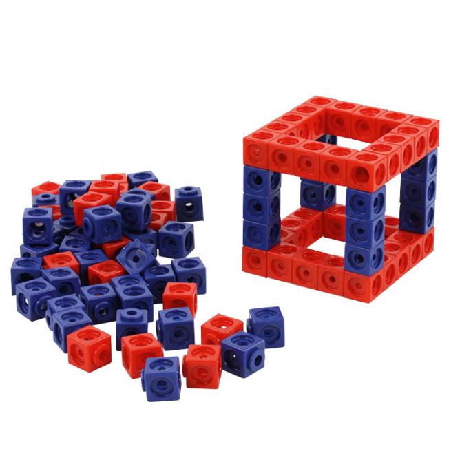 100 Steckwürfel sortiert in Rot und Dunkelblau