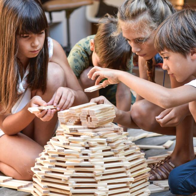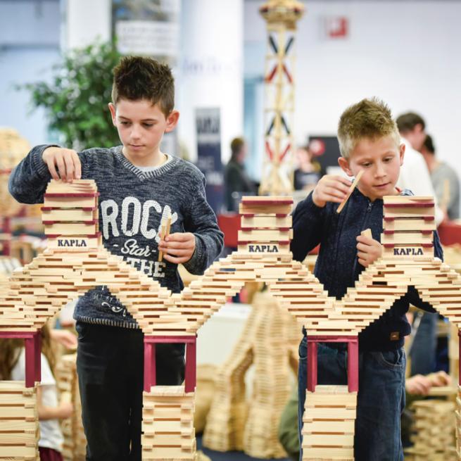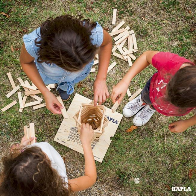 Die fast schon legendären Holzplättchen von KAPLA® sind bei großen und kleinen Konstrukteuren ein äußerst beliebtes Spielzeug. Auf den ersten Blick sind es nur gewöhnliche Holzplättchen, aber es steckt mehr dahinter. Die Bausteine sind ein absolutes Qualitätsprodukt. Alle Plättchen aus hochwertigem, glattem Pinienholz sind bis auf den Zehntel-Millimeter exakt gleich - und damit aber keineswegs langweilig. Die ausgeklügelte Form basiert auf dem dreidimensionalen goldenen Schnitt: drei flach übereinander gelegte Hölzchen ergeben genau die Breite eines einzelnen Bausteins und fünf Steine nebeneinander entsprechen genau der Länge eines Hölzchens. Durch diese Formgebung lassen sich mit ruhiger Hand und einer Portion Kreativität beeindruckende dreidimensionale Bauwerke, Tiere und vieles mehr bauen – ganz ohne kleben oder stecken. Da die Bausteine absolut passgenau sind, können sehr standfeste Konstruktionen entstehen.