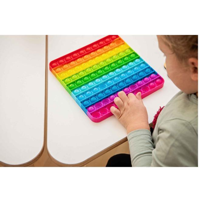 Kinder greifen kräftig zu und trainieren zugleich ihre Motorik. Die mit den Ziffern von 1 – 100 bedruckten Zahlenfelder sind sehr weich, wodurch die Kinder sie mühelos rein- und rausdrücken. Die faszinierende Haptik lässt die Kids das Brett ausgiebig benutzen und führt sie ansprechend ans Zählen und Rechnen im Zahlenraum bis 100 heran. Die Rasterstruktur und die verschiedenfarbigen Reihen helfen, Zahlenfolgen und Zehnerzusammenhänge zu begreifen. Das Brett ist pflegeleicht, widerstandsfähig und den Herausforderungen des Schulalltags bestens gewachsen. Ab 4 Jahren.