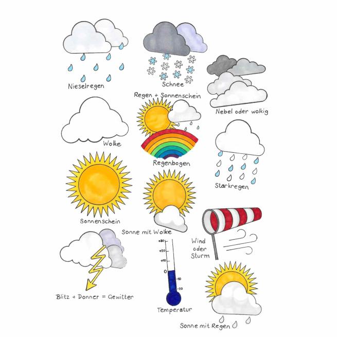 Wird es heute regnen, stürmen oder schneien? Mit den 10 großen Wetterstempeln lassen Ihre Schüler auch die Sonne scheinen oder gestalten ganze Wetterlagen und eigene Bildgeschichten.