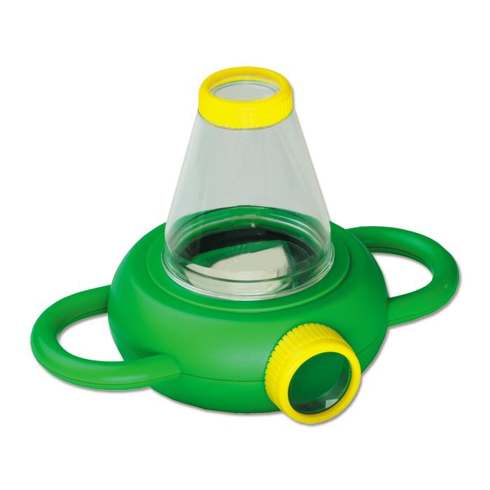 Kleine Krabbeltiere in Bewegung studieren – das begeistert die Kinder! Diese Becherlupe ermöglicht Beobachtungen aus zwei verschiedenen Perspektiven. Die Kinder betrachten die Objekte entweder durch die obere oder die seitliche Lupe. Der Clou: Über einen schrägen Spiegel lässt sie der Bewegungsapparat der Tiere bequem von unten beobachten. Die großen Henkel erleichtern den Kindern das ruhige Halten der Becherlupe. Altersempfehlung: 3 – 14 Jahre
