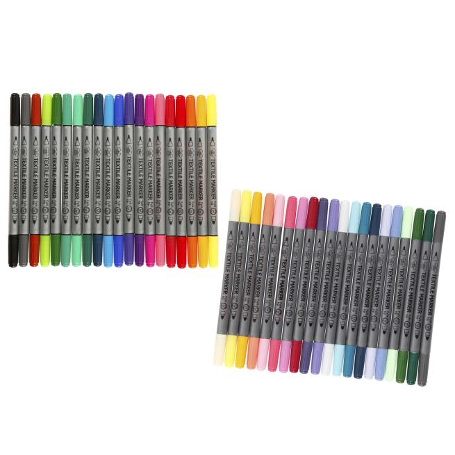 Die 20 Stifte in brillanten Farben sind doppelseitig einsetzbar: Die dünne Mine (2,3 mm) eignet sich hervorragend zum Zeichnen von Linien und die dicke Mine (3,65 mm) zum großflächigen Ausmalen.