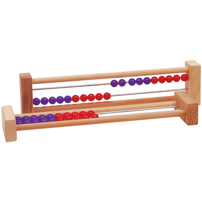 Perfekt für das Kennenlernen des 20er-Zahlenraumes, für erste Zähl- und Rechenübungen sowie zur Zehnerüberschreitung. Kleine, sehr robuste Ausführung. Liegend und stehend zu verwenden.
