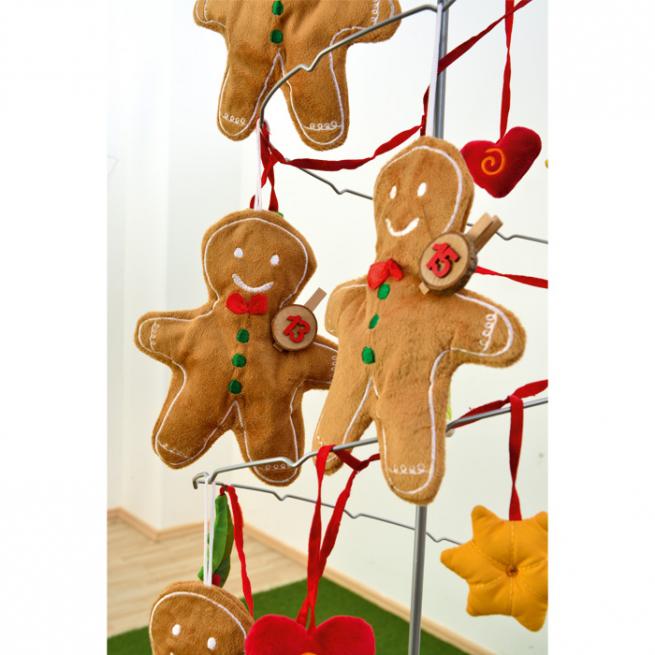 Adventskalender zum „Anbeißen“. Befüllen Sie die 24 putzigen Lebkuchenmännchen mit Kleinigkeiten und hängen Sie den drolligen Adventskalender z. B. an eine lange Kordel oder an die Wand. Je mit Reißverschluss und Aufhängeschlaufe. Ab 3 Jahren.