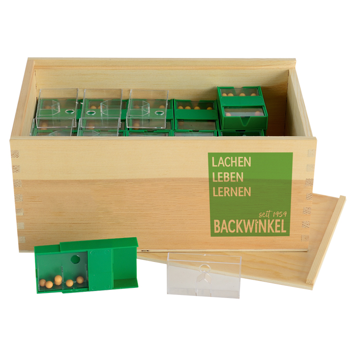 In der Holzbox ist alles immer ordentlich untergebracht und sofort zur Hand. Sogar für zusätzliche Schüttelboxen ist in der Box noch reichlich Platz vorhanden.