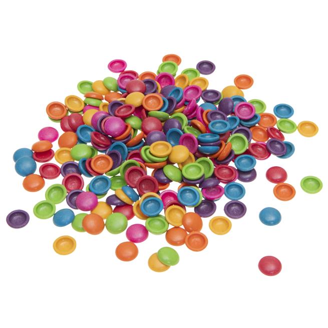 Die Muggelsteine bestehen aus umweltfreundlichem und widerstandsfähigem treeNside-Biokunststoff, hergestellt in Deutschland, der gut die verarbeiteten Holzfasern erkennen lässt. Dank ihrer angenehmen Haptik und der kompakten Größe von 0,7 x 2 cm (H x Ø) liegen die Steinchen den Kindern ausgezeichnet in der Hand und ermutigen zum ausgiebigen Verwenden.