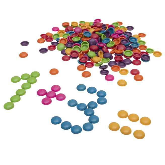 Mit den bunten Muggelsteinen kreieren die Kinder farbige Muster und Figuren, üben das Zählen oder formen Zahlen und Rechenzeichen, um ganze Rechenaufgaben auszulegen. Auch Mengen stellen die Kids mithilfe der Steinchen optisch reizvoll dar. Das hilft, erste Matheübungen förmlich greifbar und optisch verständlich zu machen. Das intensive und vielfältige Ausprobieren und Kombinieren fördert zugleich die kindliche Fantasie, Feinmotorik sowie die visuelle Wahrnehmung.
