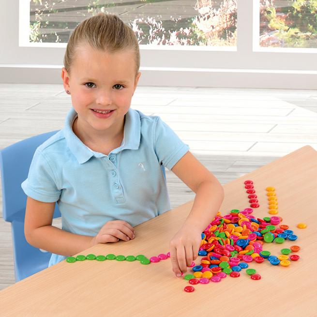 Die knopfartigen Muggelsteine in knalligen Farben finden im Schulalltag vielfältige Einsatzmöglichkeiten, z. B. zum Sortieren und Zählen im Mathematikunterricht oder in der Freiarbeit als Spielsteine. Je 250 Stück.