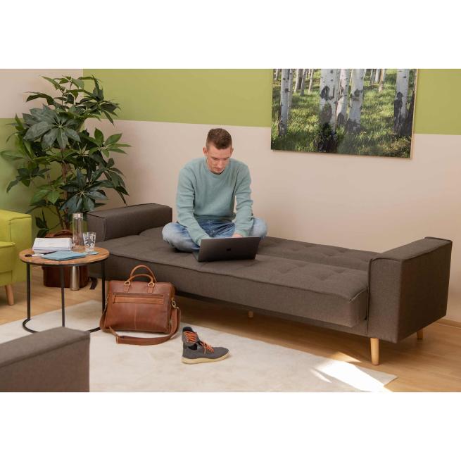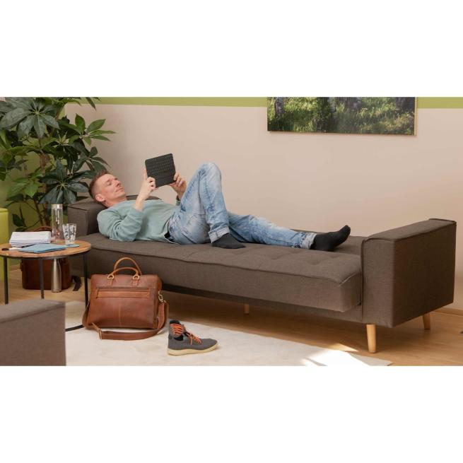 Herrlich: Auf dem Schlafsofa Lennja strecken Sie oder Ihre Kinder zum Entspannen auch mal alle Viere von sich. Einfach die Rückenlehne umklappen, hinlegen und relaxen. Das Sofa besticht durch seine klaren Linien und die klassische Steppung auf Sitz- und Rückenpolster.