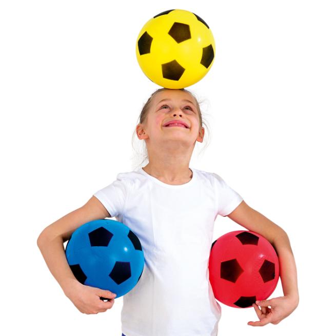 Ob in der Pause auf dem Schulhof oder in der Turnhalle, diese extraweichen Vollschaumstoffbälle im Fußball-Design sind wahre Allroundtalente. Sie erhalten 3 unbeschichtete Softbälle in gelb, blau und rot im Netz (100 % Polypropylen).