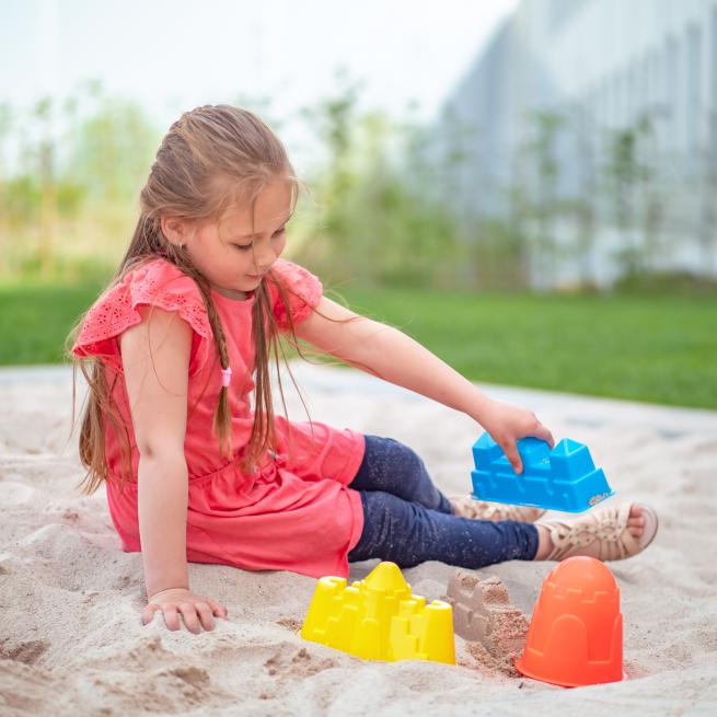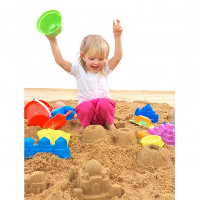 Hier entstehen Sandburgen im Handumdrehen. Mit den 3 Sandformen sind den kleinen Baumeistern keine Grenzen gesetzt und tolle Gebäude werden errichtet.