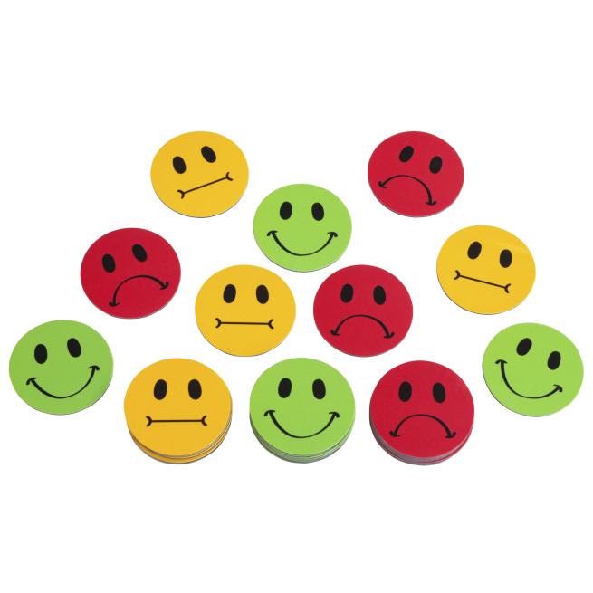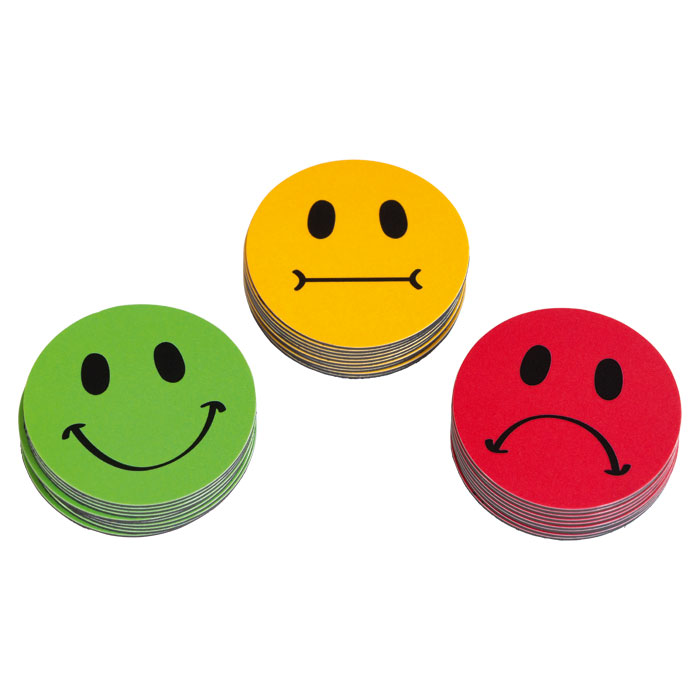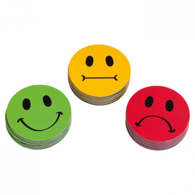 30er-Set: Je 10 Stück in Grün (lächelnd, positiv), Gelb (neutral), Rot (traurig, negativ), beidseitig haftend.