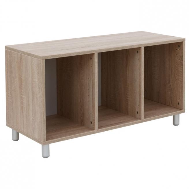 Erweitern Sie Ihre EduCasa Spiel-Lern-Räume mit den passenden Regalen zur einfachen Selbstmontage. Korpus aus robuster Spanplatte im Dekor Eiche mit Stellfüßen in Aluminium.