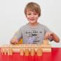 Die Blöcke haben für je 10 unterschiedliche Zylinder die passenden Aussparungen. Die Kinder ordnen die Zylinder entsprechend zu. Sie vergleichen Hohlraum und Körper und erkennen den Dimensionsunterschied. Dabei erlernen sie Begriffspaare wie dick - dünn, hoch - tief, groß - klein oder flach - hoch. Trainiert wird außerdem Motorik und mathematisches Verständnis.