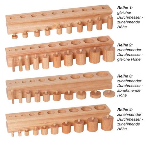4 Blöcke mit Einsatz-Zylindern