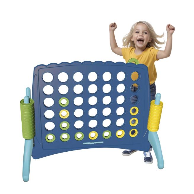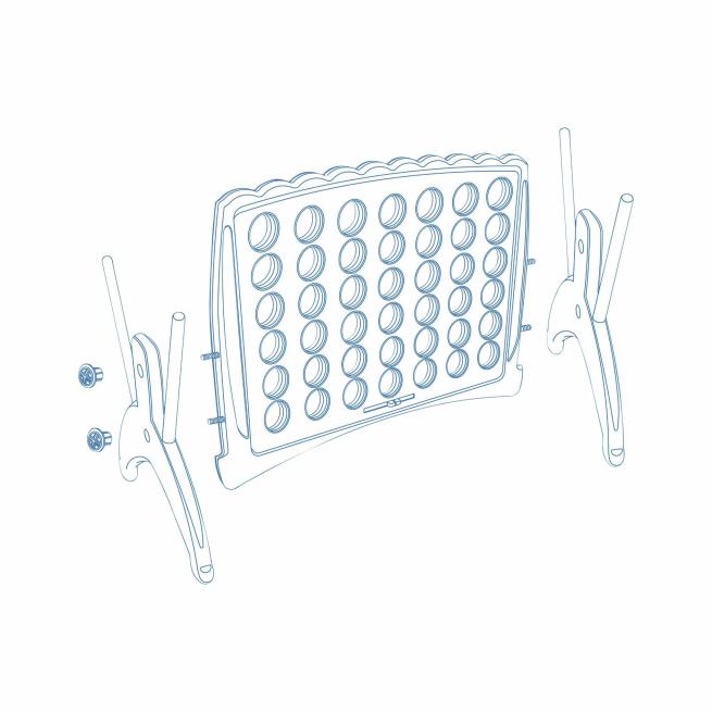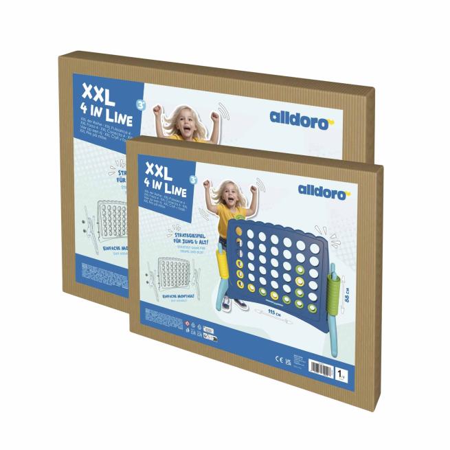 Standfester Spiel-Klassiker für drinnen und draußen. An dem farbenfrohen Gestell taktieren zwei oder mehr Mitspieler die richtige Strategie zum Platzieren der Ringe, sodass vier Ringe derselben Farbe eine waagrechte, senkrechte oder diagonale Reihe ergeben. Platzsparende Aufbewahrung der Spielringe auf den seitlichen vier Füßen.