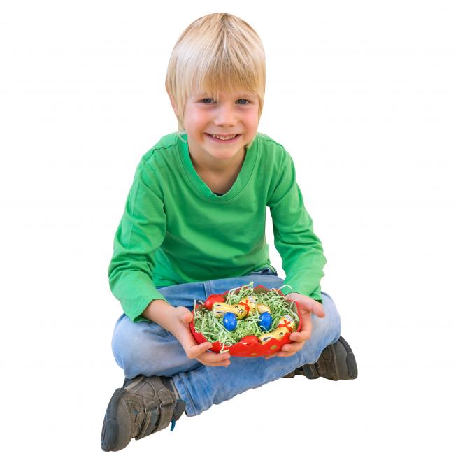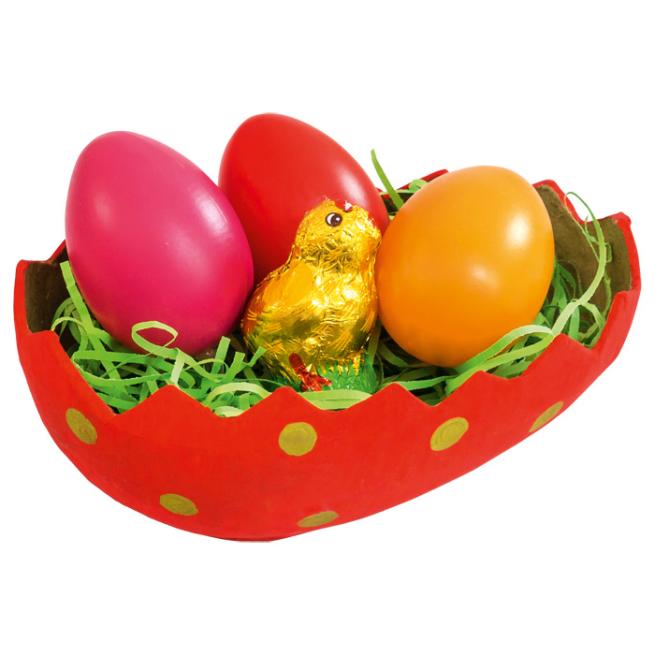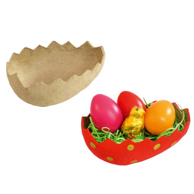 Die Rohlinge bestehen aus fester Pappe und lassen sich leicht bemalen. Mit Farbe, Ostergras, Moos, Streudeko, Filz oder sonstigen Bastelmaterialien werden die Eierschalenhälften zu tollen Hinguckern mit eigener Note. Kleine Geschenke lassen sich darin ebenso gut präsentieren wie Süßes.