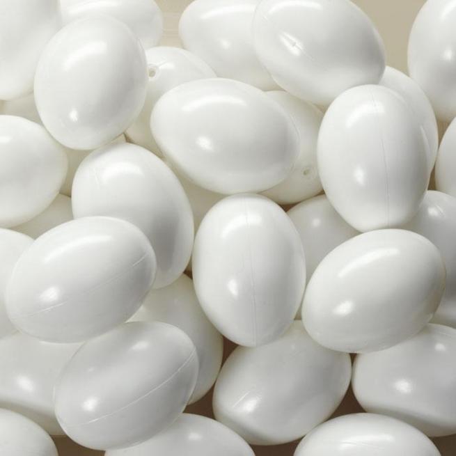 Die stabilen Kunststoff-Eier eignen sich hervorragend zum Bemalen und Bekleben. Der Kreativität sind keine Grenzen gesetzt. Färben Sie die Eier zum Beispiel mit Marmorierfarbe oder Acrylfarben ein oder bekleben Sie sie mit Glitzersteinen, Wackelaugen, Federn oder Wolle.