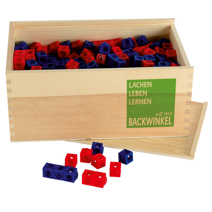 Speziell für den Anfangsunterricht haben wir dieses Klassen-Set zusammengestellt. Sie erhalten 500 Würfel je 250 in Rot und 250 in Blau. Bei 25 Schülern in einer Klasse hat jeder Schüler 10 rote und 10 blaue Steckwürfel zum Rechnen bis 20 zur Verfügung.