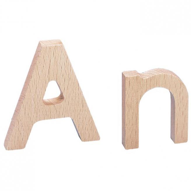 53 Holzbuchstaben, je 1 Groß- und Kleinbuchstabe sowie Punkte für Umlaute.